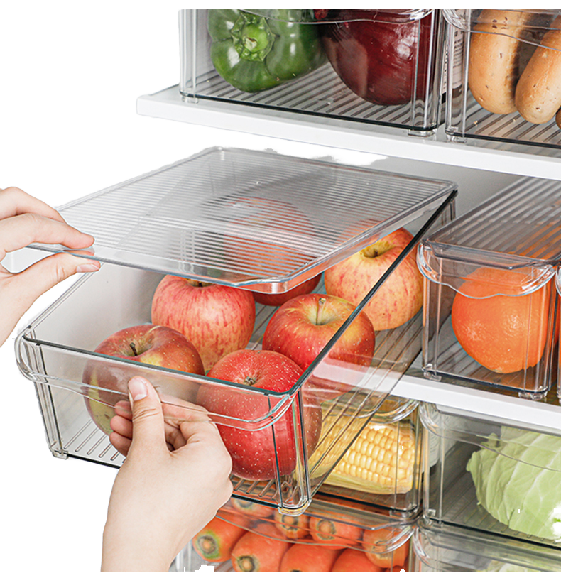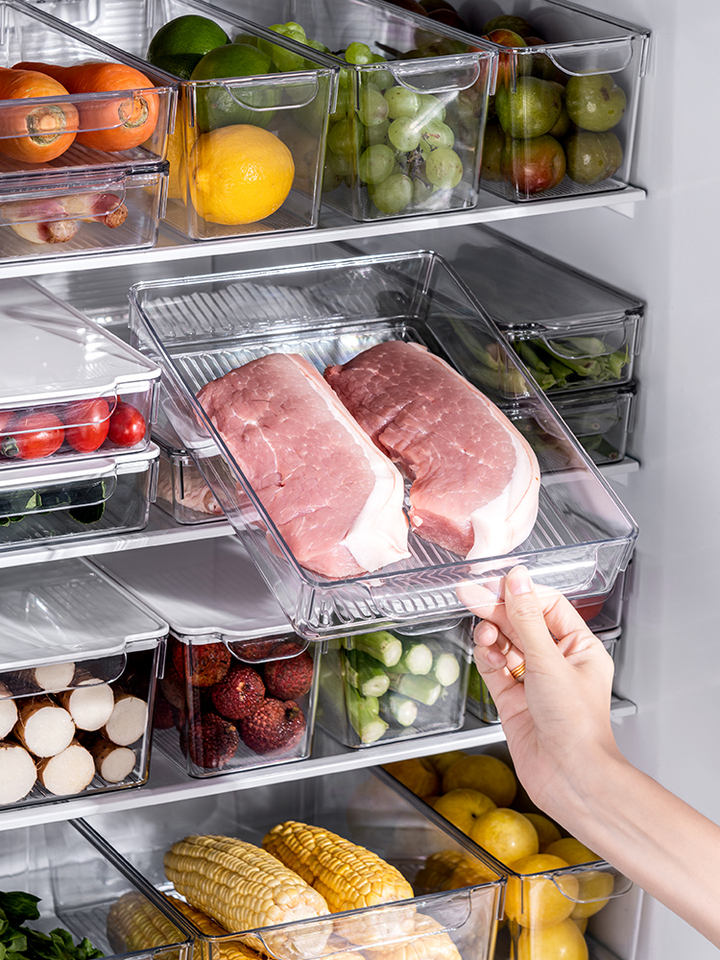 Custom 8-piece Acrylic Fridge Organizer Bins Rectangle Pantry Food Storage Set Handle Kitchen Refrigerator Storage 6-10L