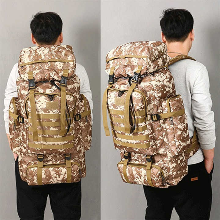 กระเป๋าเป้เดินป่ากันน้ำขนาด 80 ลิตร ลายพราง