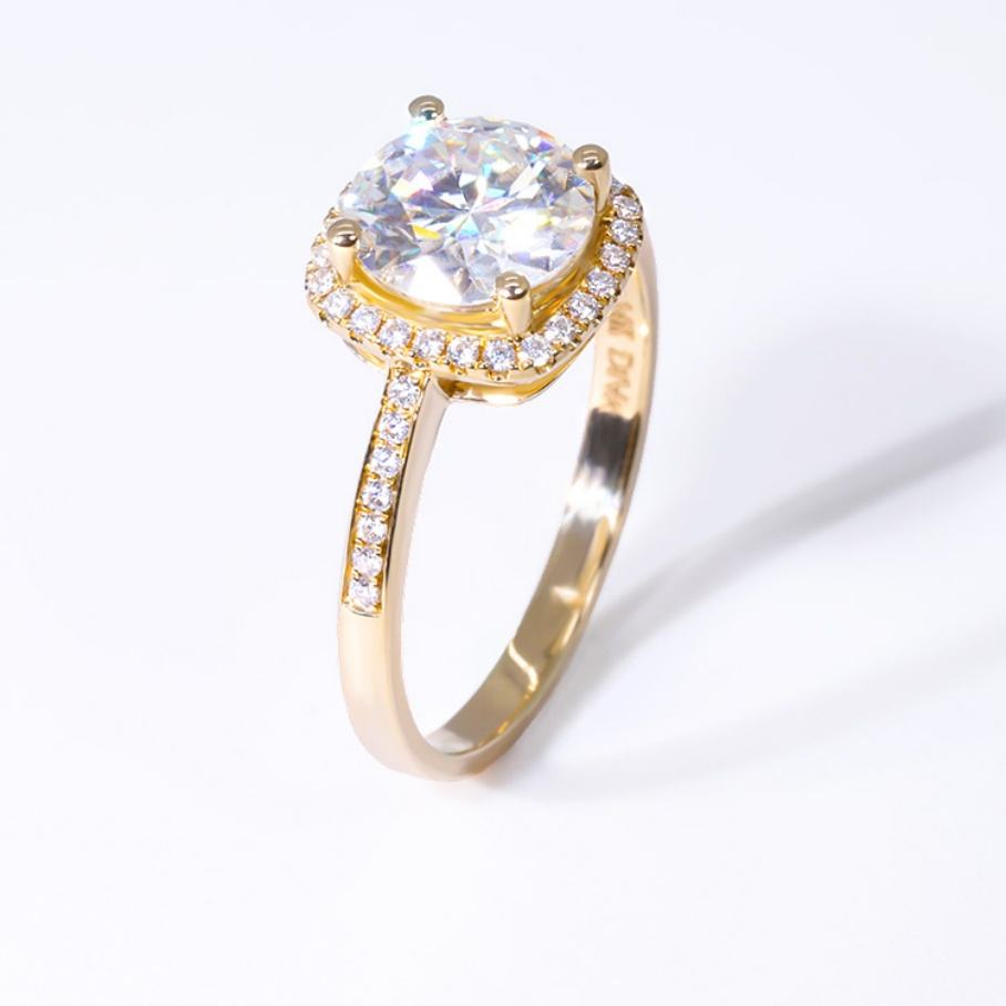 แหวนแต่งงานมอสซาไนต์ทรงกลมขนาด 8 มม. แบบกำหนดเอง แหวนเพชรโมอิสซาไนต์ทอง 14k แหวนครบรอบแต่งงาน