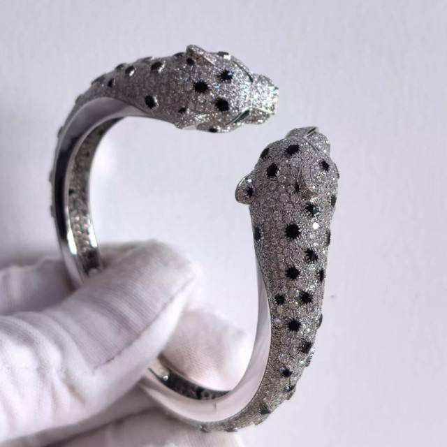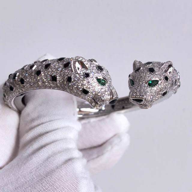 แหวนเงินแท้ 925 ลายตัวอักษรหรูหรา ชุบทองคำขาว ประดับมอร์แกไนต์ทรงเสือดาว พร้อมใบรับรอง