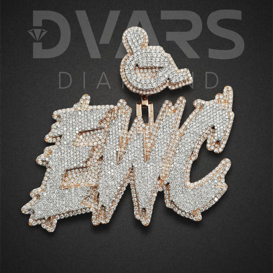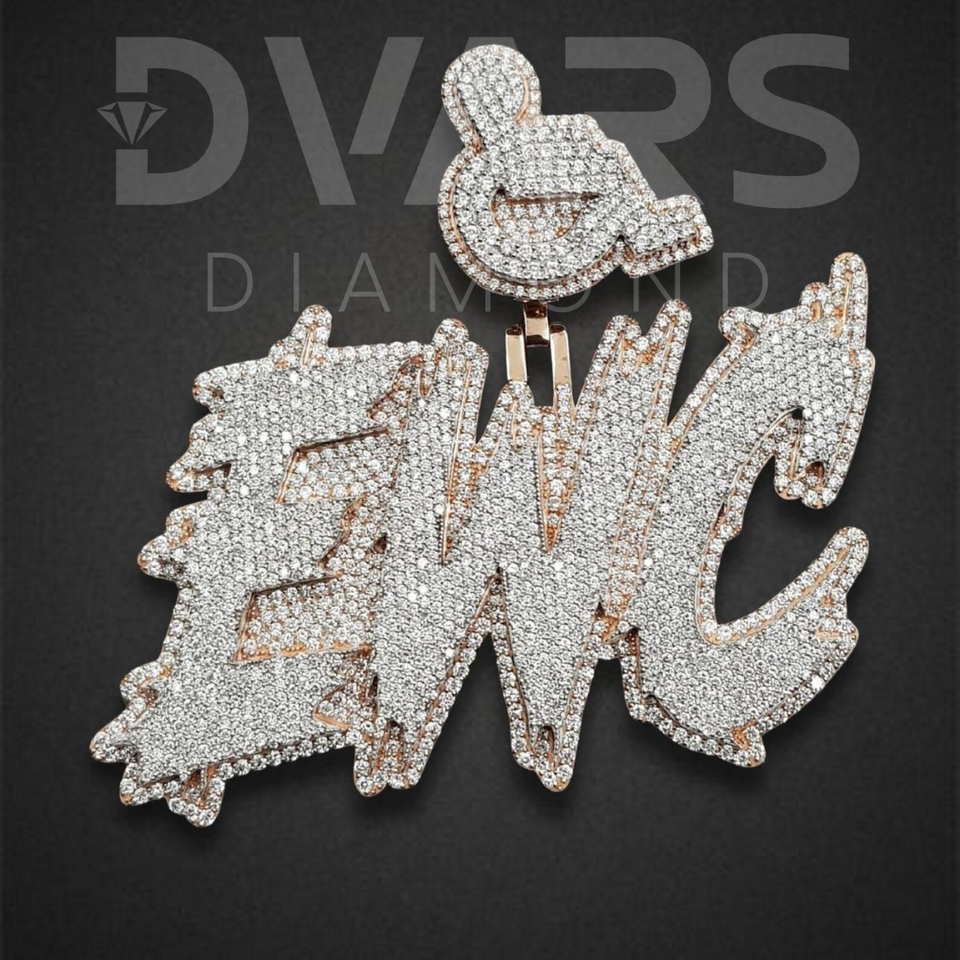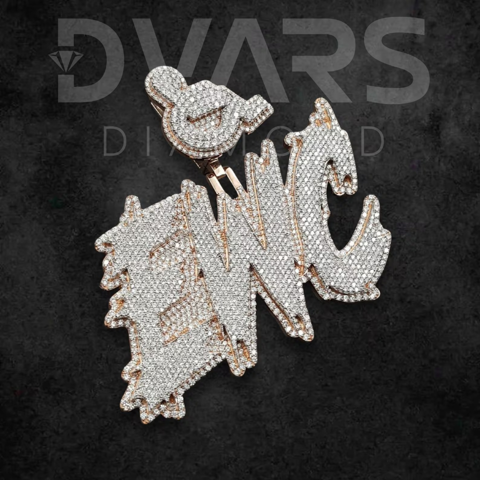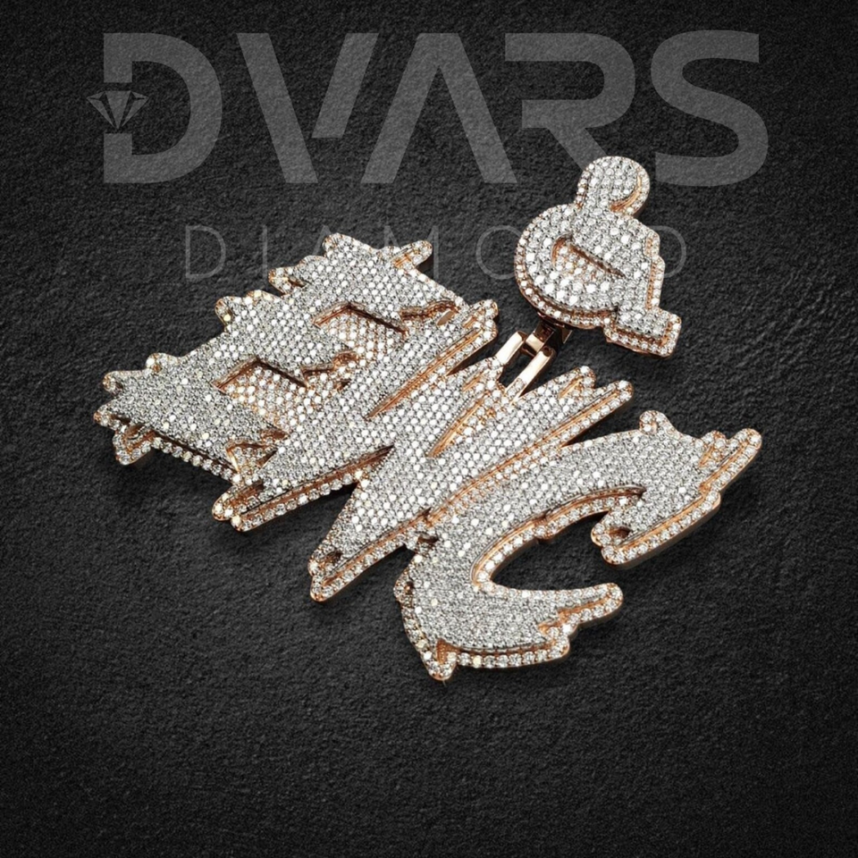 925ที่กำหนดเองเงินสเตอร์ลิงห้องปฏิบัติการประดับเพชรสไตล์คลาสสิกจี้รูปตัวอักษรทรงกลมเคลือบทองสดใส VVS