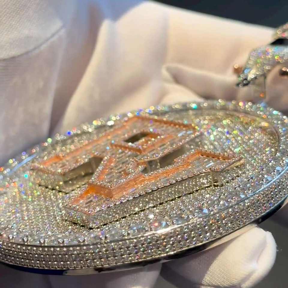 จี้เงินแท้ 925 ประดับเพชรโมอิสซาไนต์รูปตัวอักษร RV พร้อมปีกนางฟ้า ดีไซน์แบบ Iced Bling สไตล์ฮิปฮอป