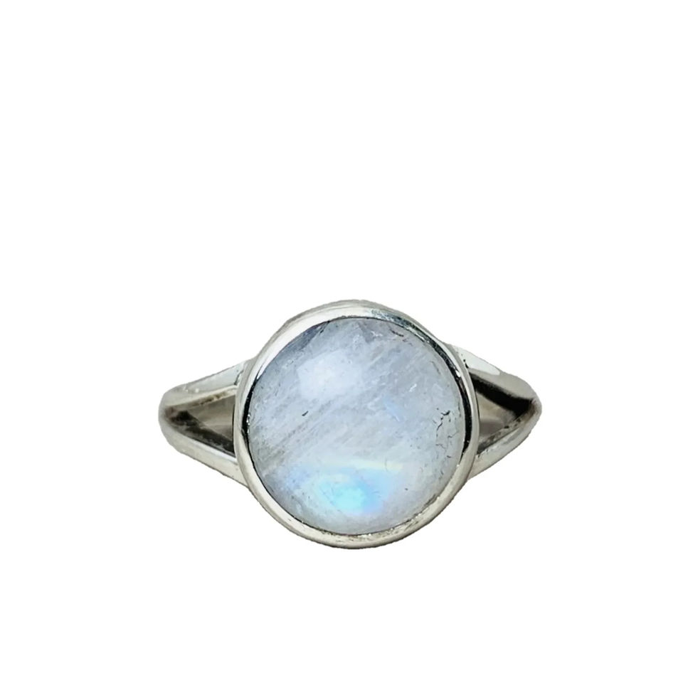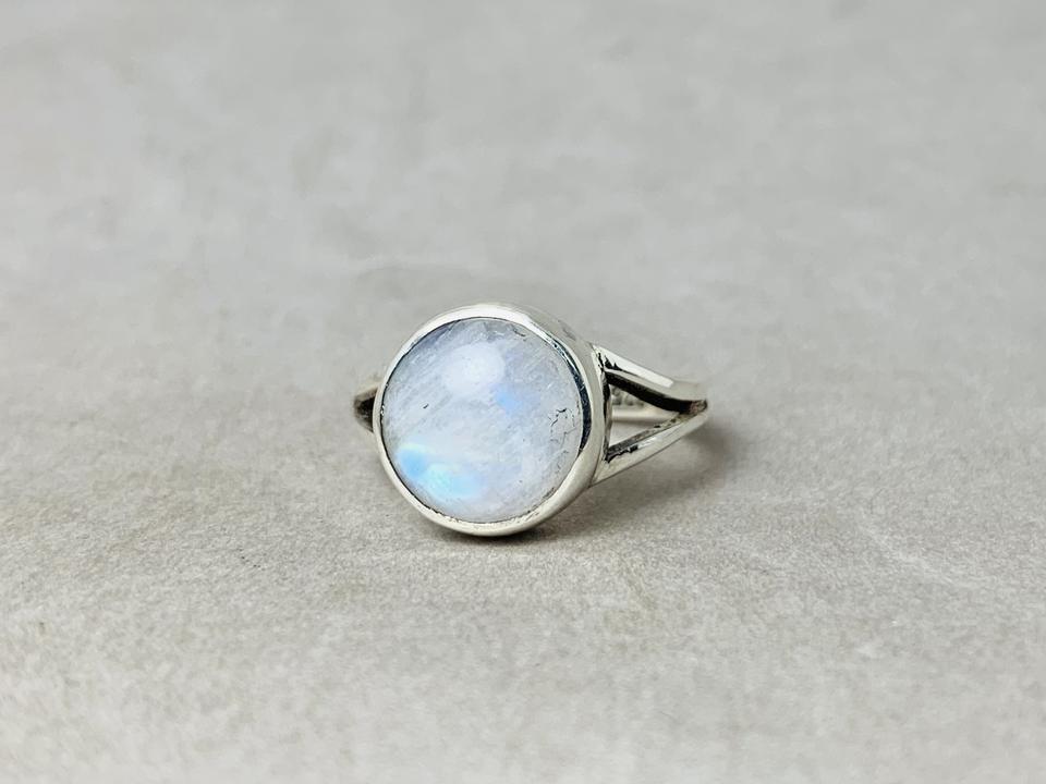 แหวนพลอยมูนสโตนธรรมชาติสีฟ้าสเตอร์ลิง925ตามสั่งทำด้วยมือเครื่องประดับมูนสโตนดีไซน์เนอร์