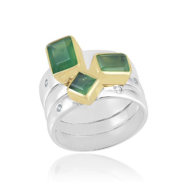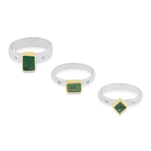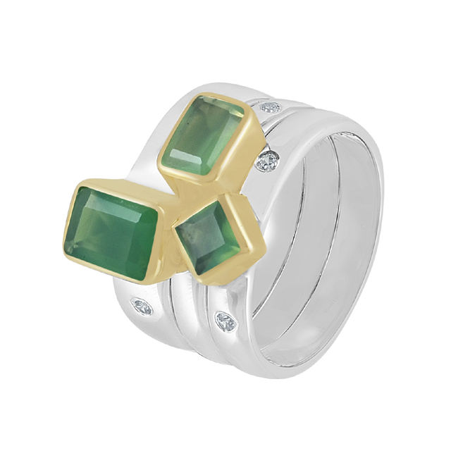 แหวนสองโทนสีเงินสเตอร์ลิงพร้อมพลอยคาลซิโดนีย้อมสีด้วยหินคริส925ตามสั่งสำหรับงานปาร์ตี้