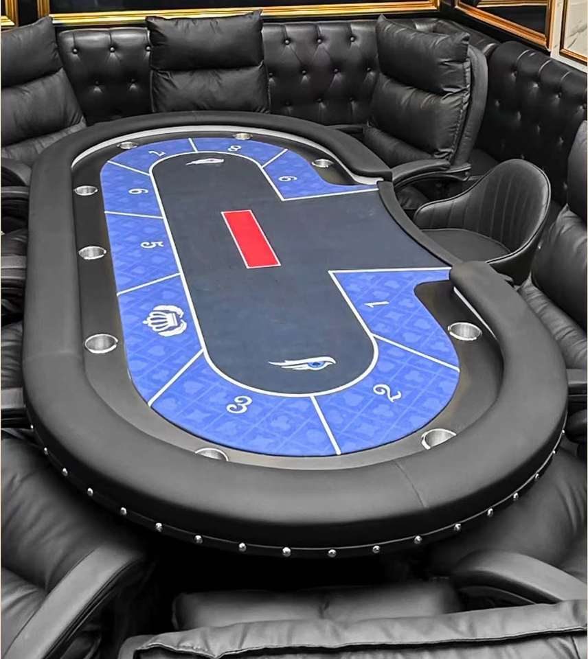 โต๊ะโป๊กเกอร์ไม้96นิ้วพร้อมไฟ LED สำหรับความบันเทิงเท็กซัสโฮลเอ็มและการพนันรองรับผู้เล่น10คน