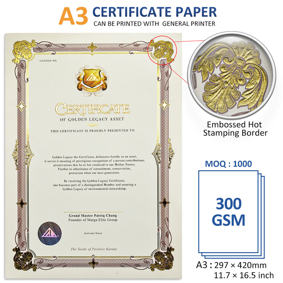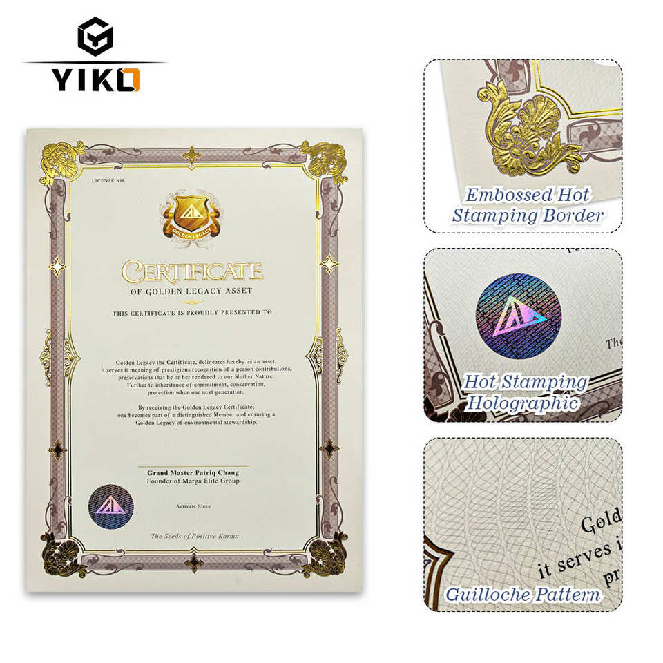 ชื่อสินค้า:กระดาษพิมพ์ใบรับรองความปลอดภัยแบบกำหนดเอง