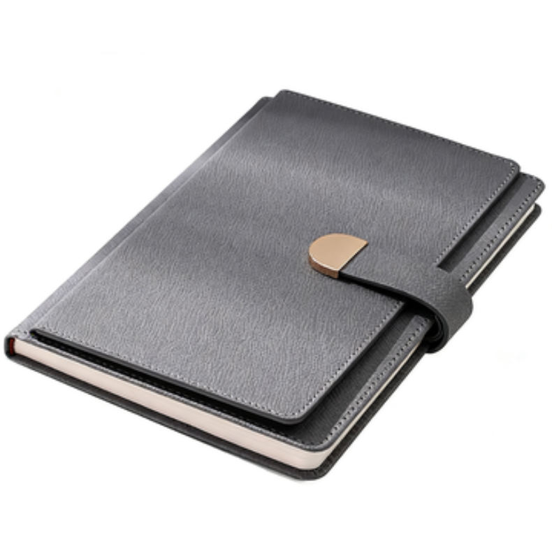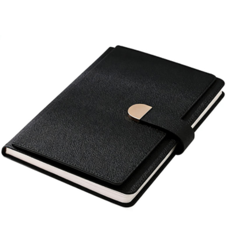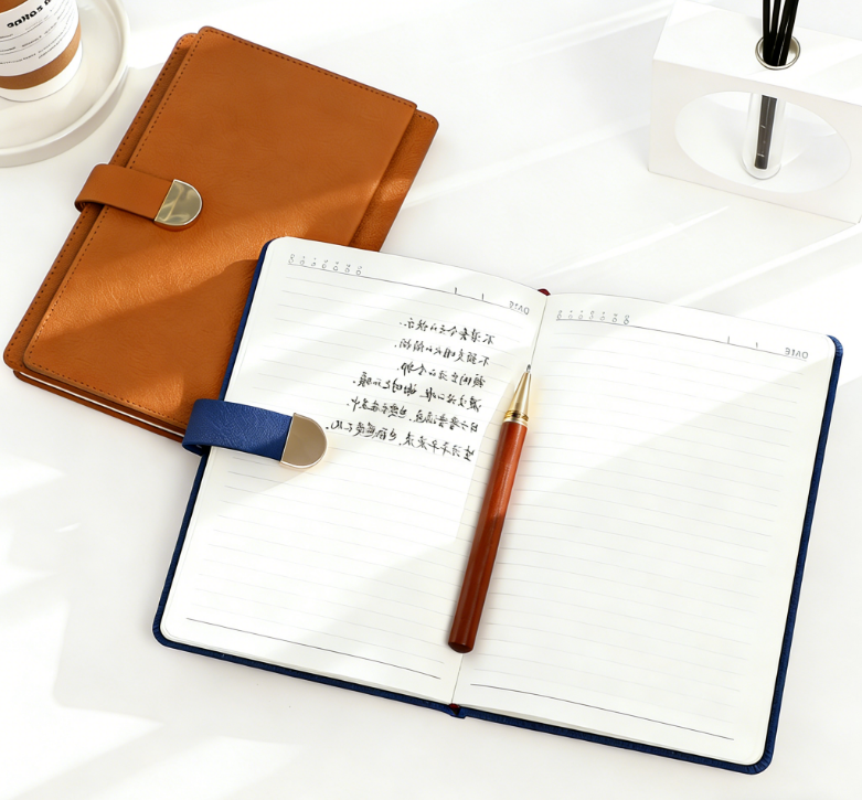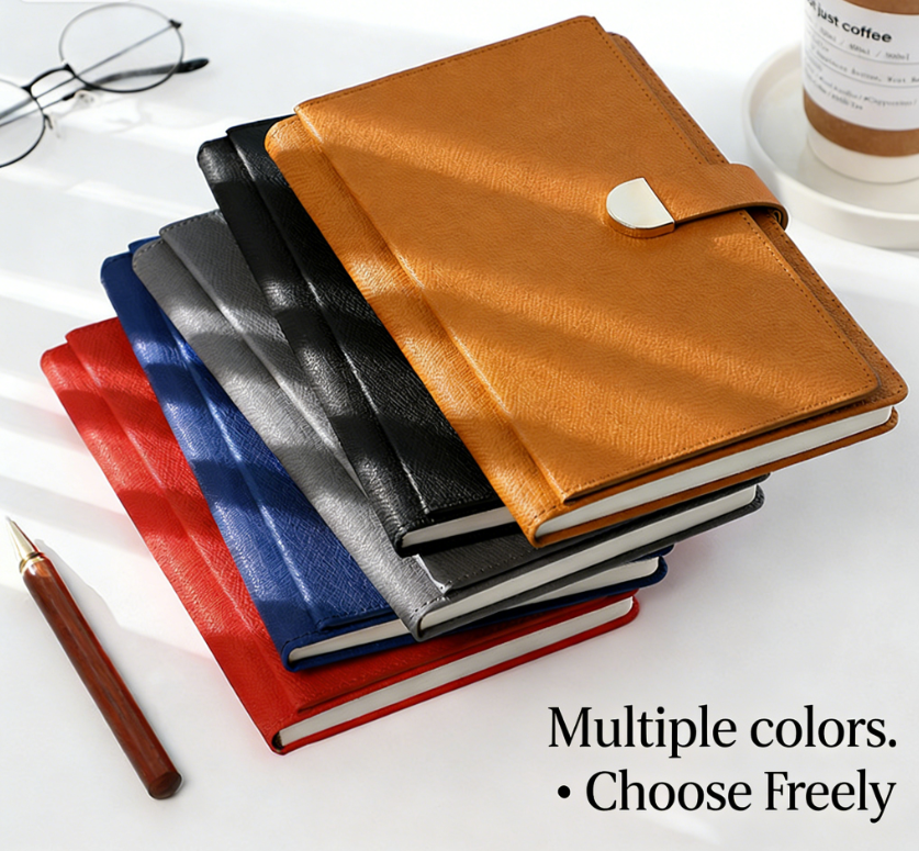 สมุดโน้ตปกหนัง PU ลายลินินขนาด A5 พร้อมตัวล็อค ปั๊มโลโก้ ปกอ่อน สำหรับธุรกิจ ออฟฟิศ และการประชุม