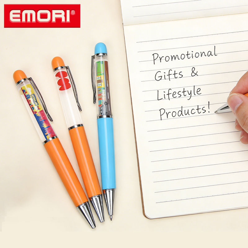 ปากกาลูกลื่นอะคริลิก ABS แบบกำหนดเอง ดีไซน์น้ำมันลอยได้ ดึงดูดสายตา พร้อมวัตถุ 3 มิติ