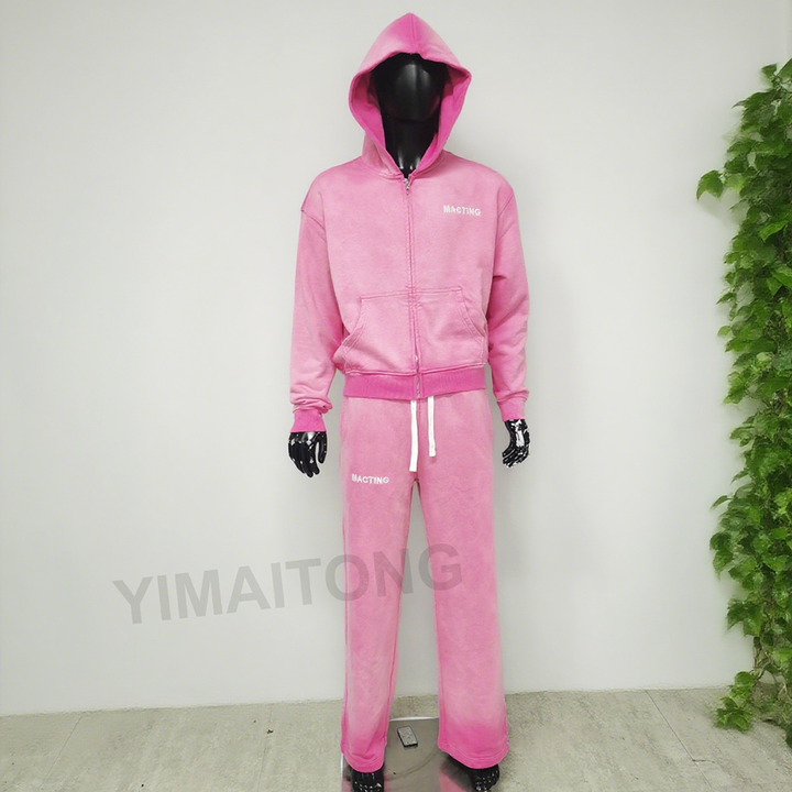 ชุดวอร์มกางเกงผ้าคอตตอนพร้อมฮู้ดสำหรับผู้ชายชุดวิ่งออกกำลังกายแบบถุง100% กรดซักแบบกำหนดเอง