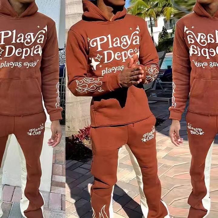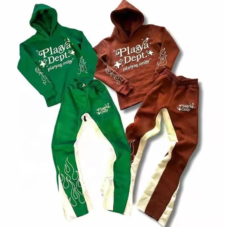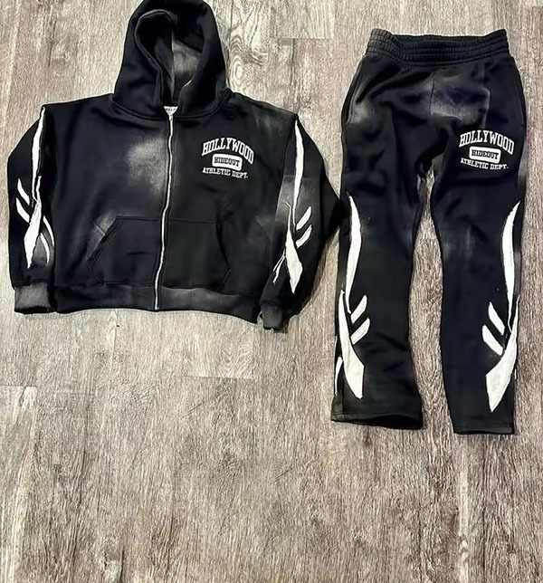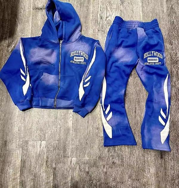 ชุดวอร์มทรงขาบานแบบย้อมสีเอซิด พร้อมเชือกผูกเอว 500 GSM กางเกงจ็อกกิ้งทรงตรง เสื้อฮู้ดดี้ขาดๆ แบบเซ็ต ยูนิเซ็กซ์