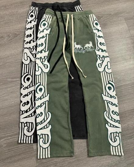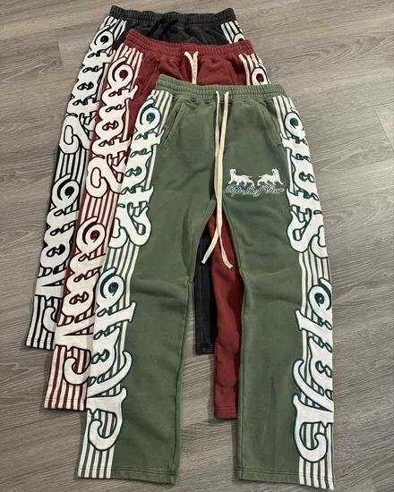 ชุดวอร์มขาบานแบบกำหนดเองชุดวิ่งออกกำลังกายแบบรูดซิปขึ้น500 GSM ขาตรงชุดออกกำลังกายแบบมีฮู้ดและกางเกงขายาวสำหรับผู้ชาย