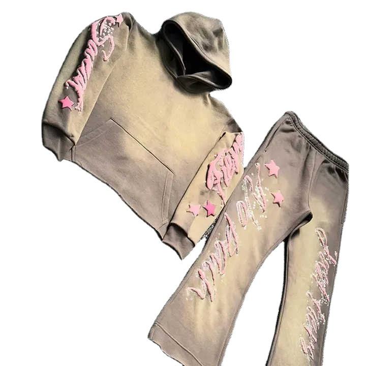ชุดวอร์มขาบานสำหรับผู้ชายชุดวอร์มปักลาย500ขากระชับแบบรูดซิปสามารถซักได้ตามต้องการ
