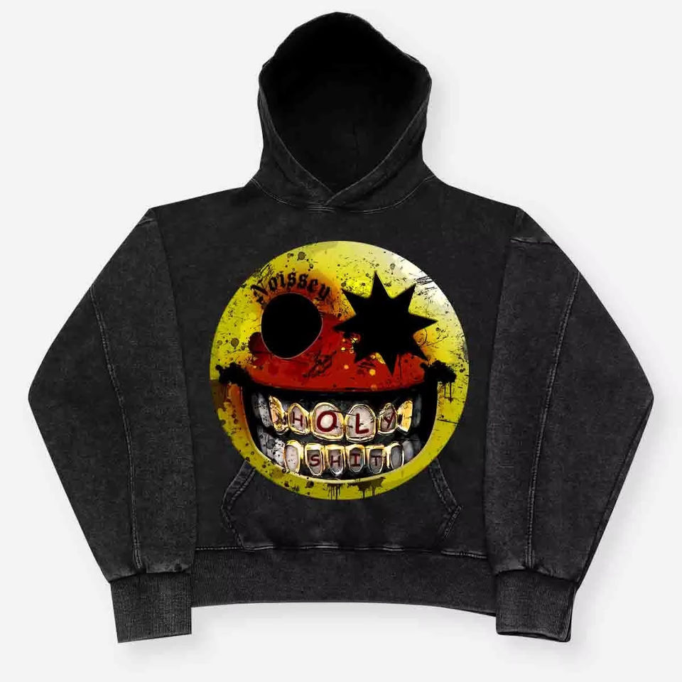 เสื้อฮู้ดล้างกรดแบบสวมหัวพิมพ์โลโก้โอเวอร์ไซส์