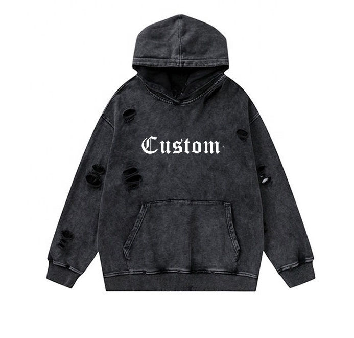 Custom Acid Wash Logo Hoodies Screen Printing High Quality Streetwear Oversize Blank Heavyweight Pullover Distressed Hoodies