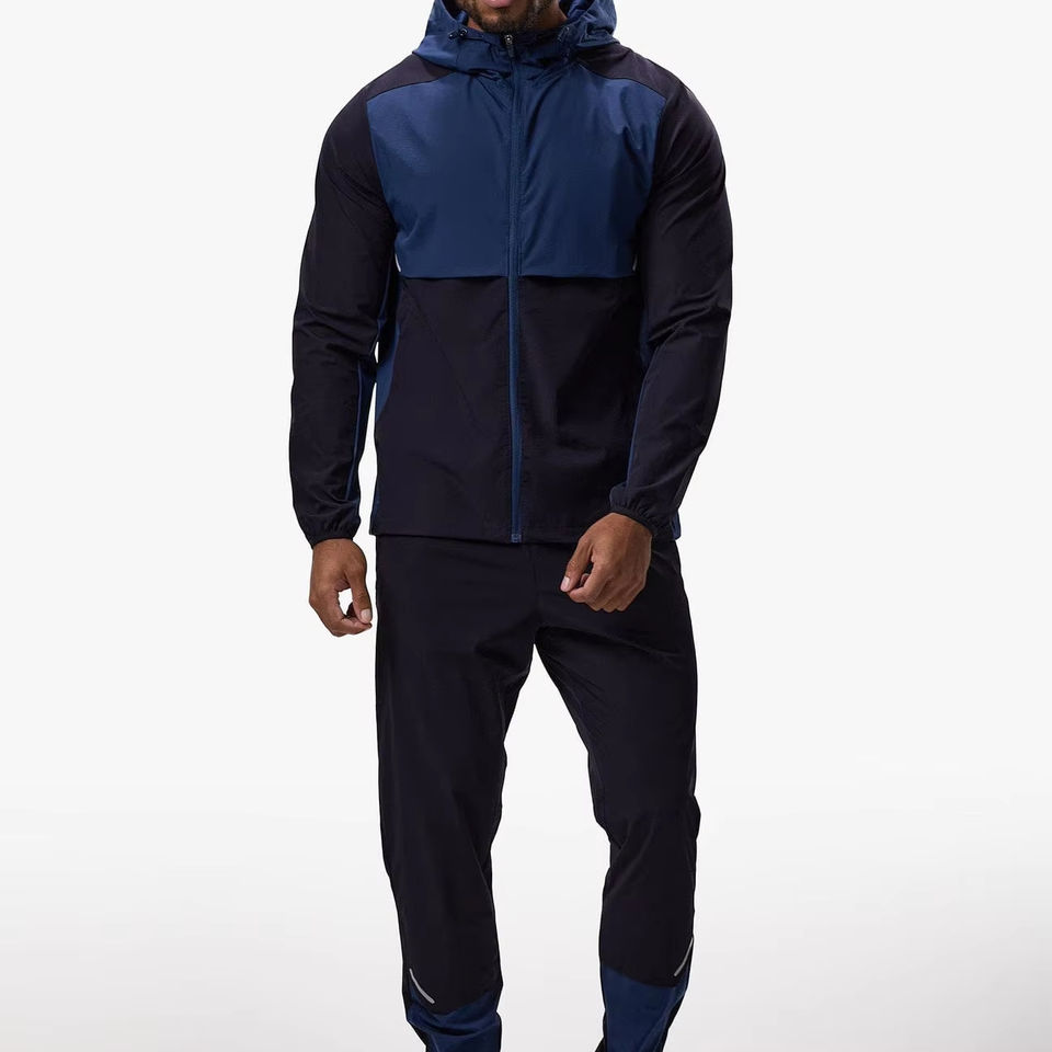 ชุดวอร์ม2ชิ้นสำหรับผู้ชายกางเกงวิ่งขาตรงมีซิปพิมพ์ลายกรดซักได้ตามต้องการ