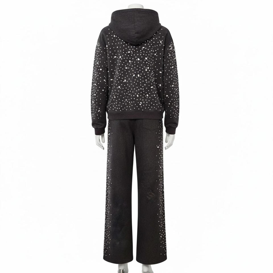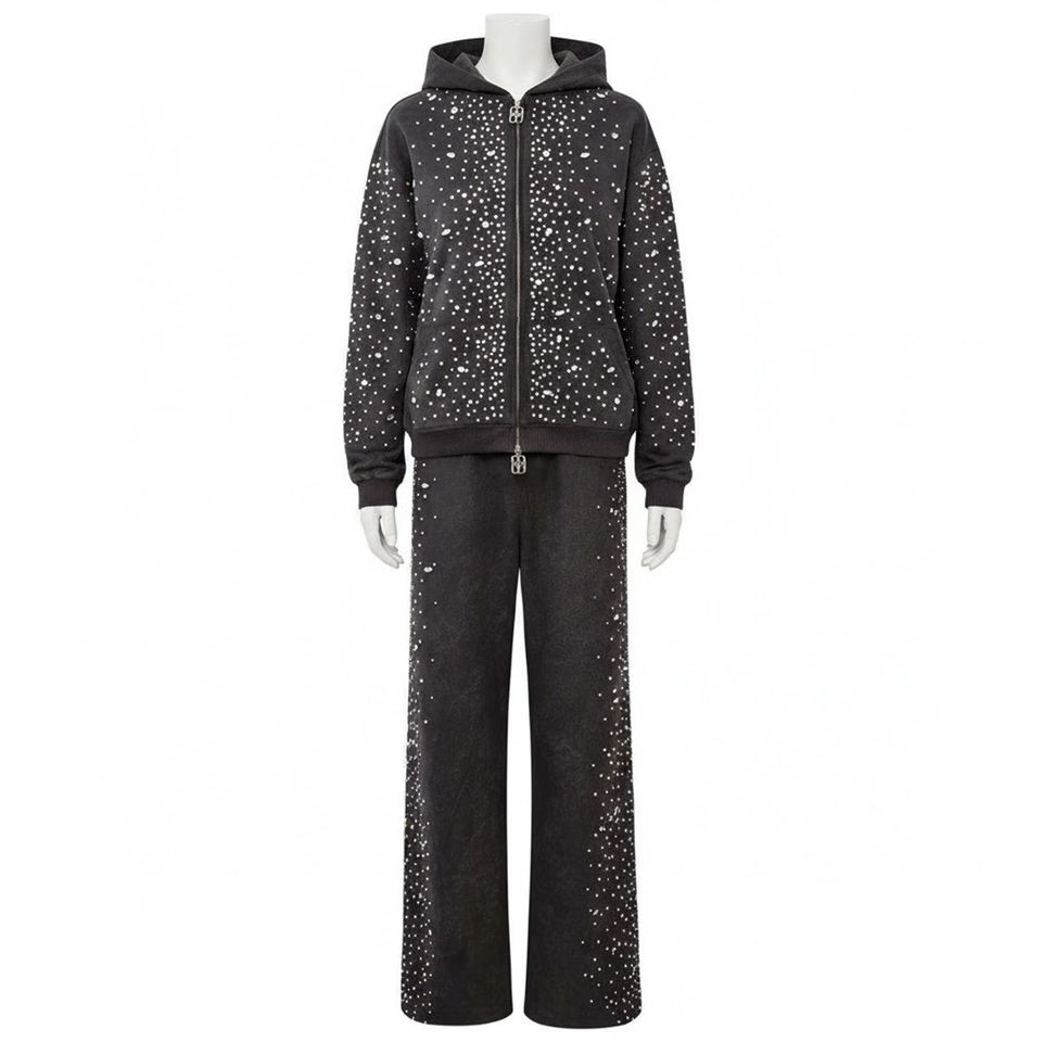 ชุดวอร์มเทรนดี้แบบย้อมสีเอซิดประดับคริสตัล สำหรับสตรีทแวร์ ลุคเทรนดี้แบบสั่งทำพิเศษ ชุดวอร์มผ้าฟลีซ 100% ผ้าฝ้าย สำหรับทุกเพศ