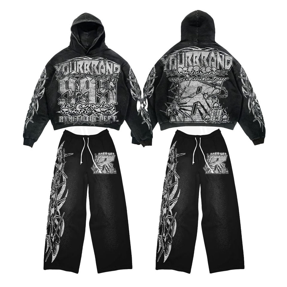 ชุดแทรคสูทสกรีนลายแบบย้อมสีเอซิด สไตล์สตรีทแวร์ทรงโอเวอร์ไซส์ ผ้าฟลีซคอตตอน 100% ใส่ได้ทุกวัน แบบยูนิเซ็กซ์ พร้อม Mockup ฟรี