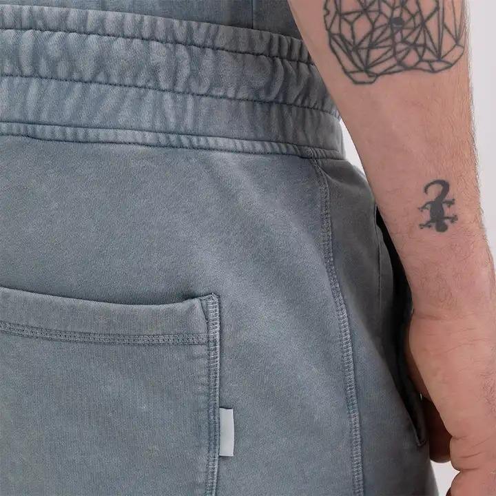 กางเกงขาสั้นล้างกรดแบบกําหนดเอง กางเกงขาสั้นพิมพ์ลายพัฟแบบกําหนดเอง High Street กระเป๋าหลวม Drawstring ยิมฟิตเนสกางเกงขาสั้นผู้ชายล้างสบายๆ
