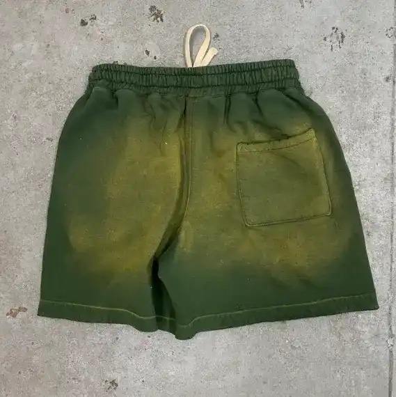 กางเกงขาสั้นล้างกรดแบบกําหนดเอง กางเกงขาสั้นพิมพ์ลายพัฟแบบกําหนดเอง High Street กระเป๋าหลวม Drawstring ยิมฟิตเนสกางเกงขาสั้นผู้ชายล้างสบายๆ