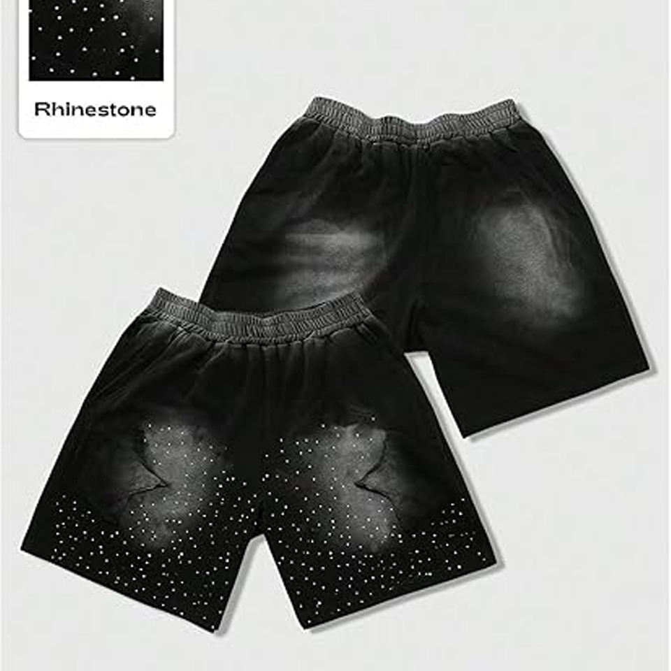 กางเกงขาสั้นผ้าคอตตอนเทอร์รี่แบบวินเทจฟอกสีด้วยกรด พิมพ์ลายสกรีน ปักลาย ซันเฟด