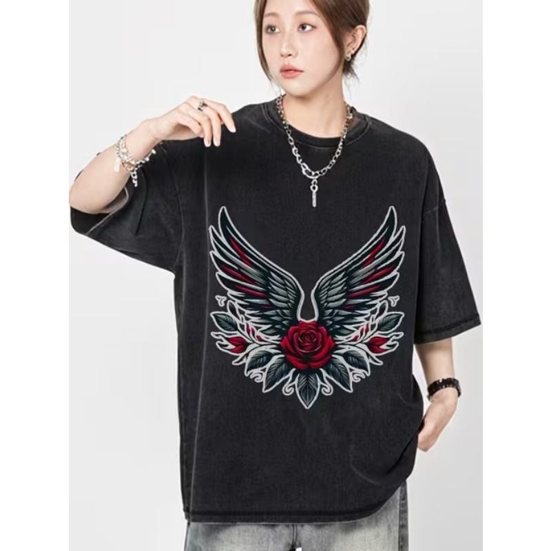 เสื้อสเวตเชิ้ตทรงบ็อกซี่สองชั้น ล้างสีแบบแอซิดวอช ซีดจางแบบโดนแดด แต่งขาดๆ คอกลม ทรงหลวม แขนปักลาย สำหรับผู้ชาย