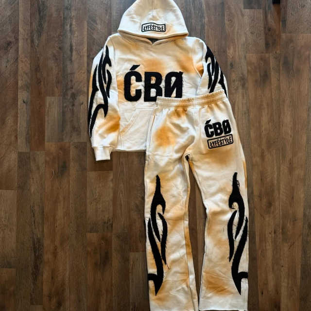 ชุดวอร์มแบบย้อมสีเอซิดสั่งทำพิเศษ 500 GSM ทรงตรง ปักลายแบบดิสเทรส ชุดฮู้ดดี้และกางเกงวอร์มสำหรับผู้ชาย