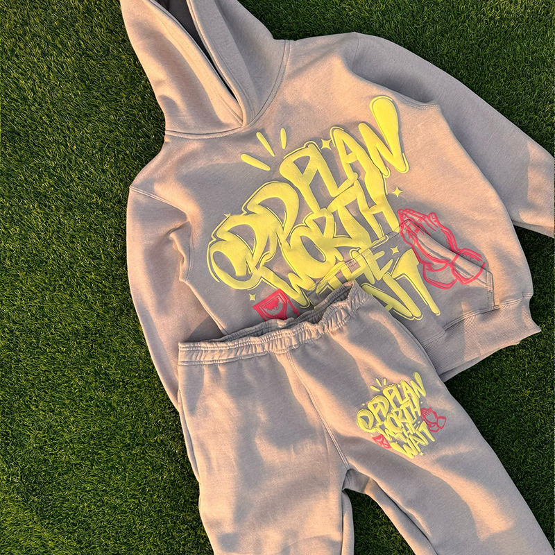 ชุดวอร์มล้างกรดสำหรับผู้ชายชุดวิ่งซักสองชิ้นชุดออกกำลังกายแบบปรับแต่งได้