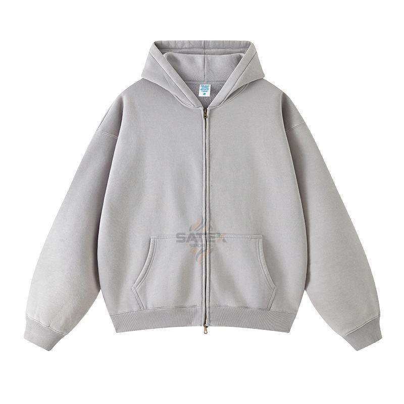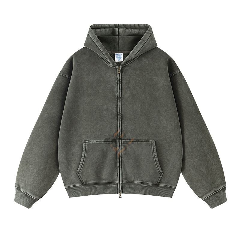 Custom Acid Wash Winter Men's Hoodies Full Zip Pocket Oversized Design Cotton High Quality 430gsm Acid Wash Full Zip Hoodies