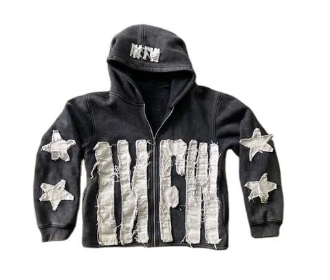 กรดล้างพืชที่กําหนดเองเสื้อกันหนาวหมวกStreetwearต่ําMOQแฟชั่นสวมใส่ความทุกข์ปักเสื้อกันหนาวหมวกUnisex Hip Hop HoodiesทําในPK