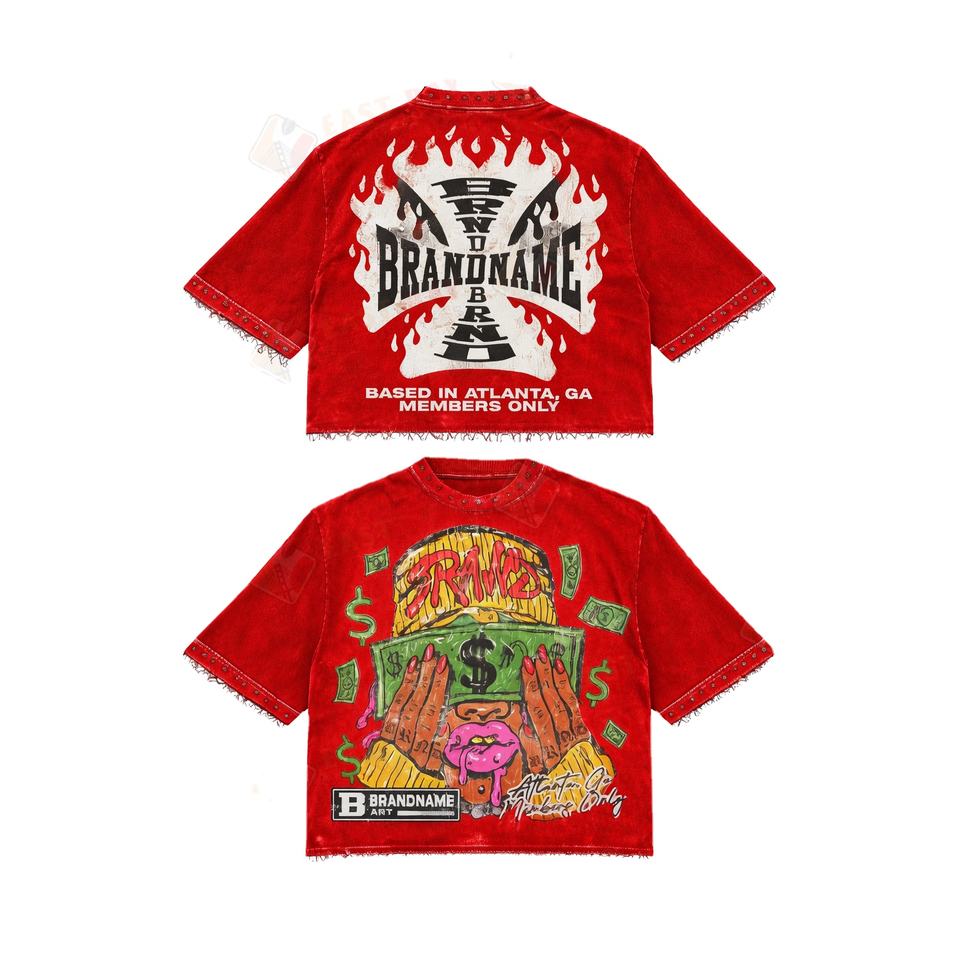 เสื้อยืดทรงบ็อกซี่ พิมพ์ลายดิสเทรสด้วยเทคนิค Acid Wash สำหรับผู้ชาย ผ้าฝ้าย 100% เนื้อหนา ประดับคริสตัล แขนสั้น