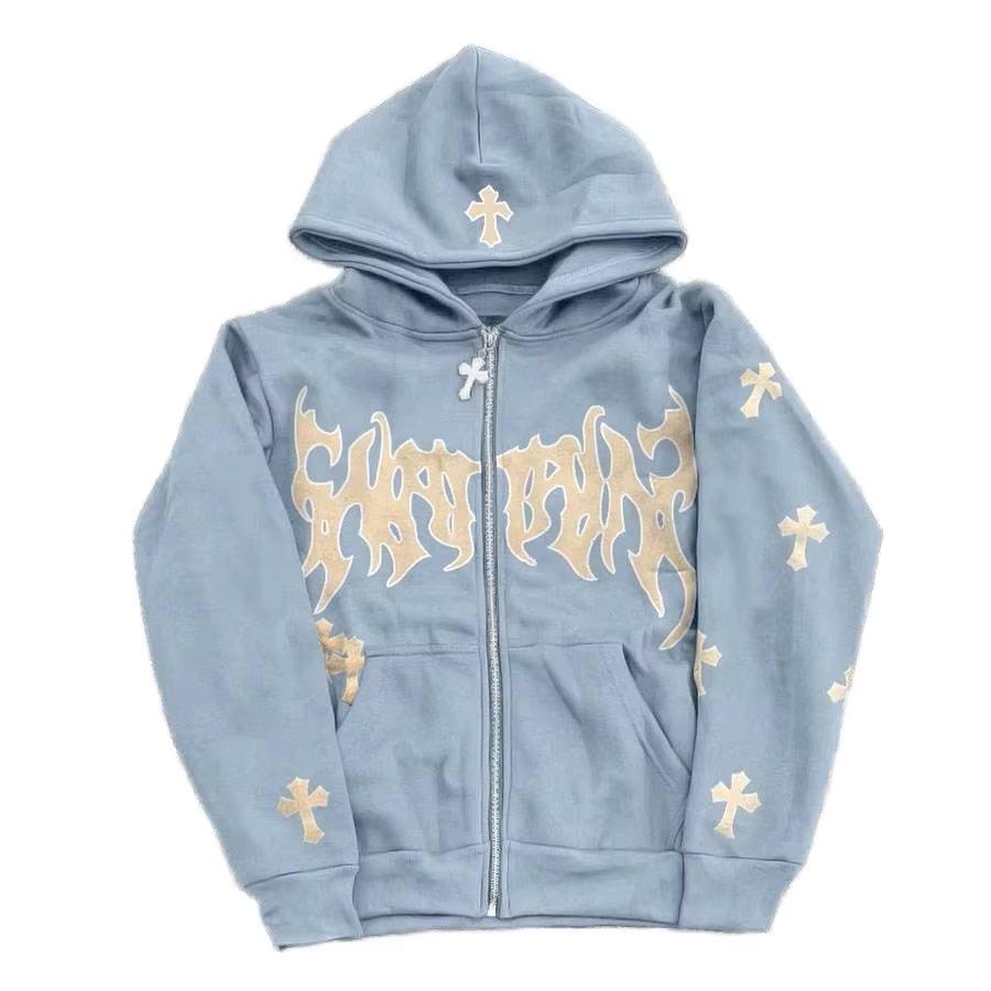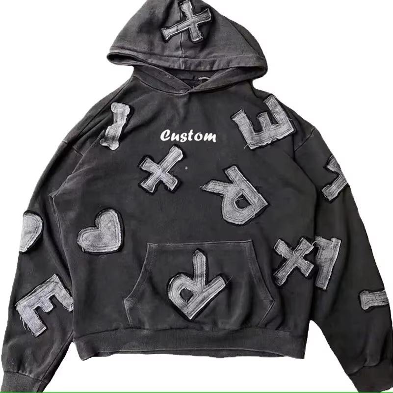เสื้อมีฮู้ดสไตล์สตรีทผ้าฟลีซของผู้ชายผ้าฟลีซซักได้ตามต้องการปักลายพัฟติดด้วยพลอยเทียมวิตกแบบดิจิตอลสีพื้นสำหรับฤดูหนาว