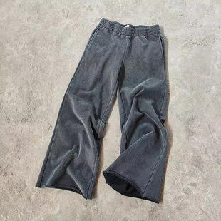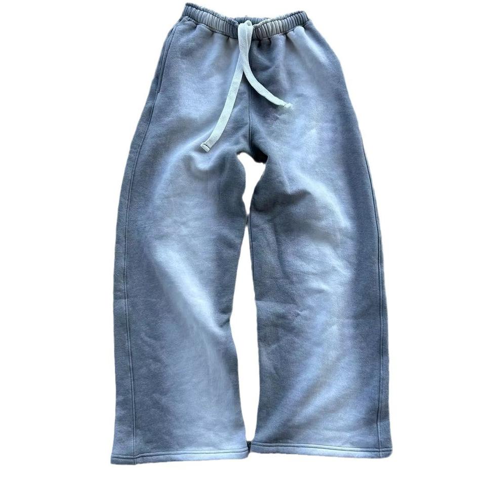 กางเกงลำลองขายาวสำหรับผู้ชายกางเกงวอร์มขาบานแบบรูดกระเป๋าข้างมีเชือกรูดไซส์พิเศษกางเกงขนแกะผ้าฝ้าย100%