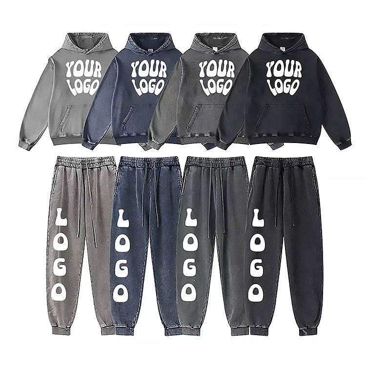 ชุดวอร์มผ้าฝ้าย 100% ซักย้อมสีแบบแอซิดวอช ซิปยาว พิมพ์ลายพัฟฟ์ ชุดแทรคสูทแบบแอซิดวอช เสื้อฮู้ดดี้และกางเกงขายาวสำหรับผู้ชาย