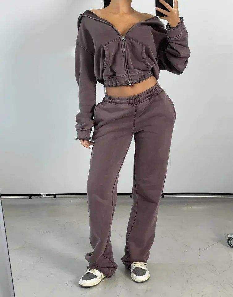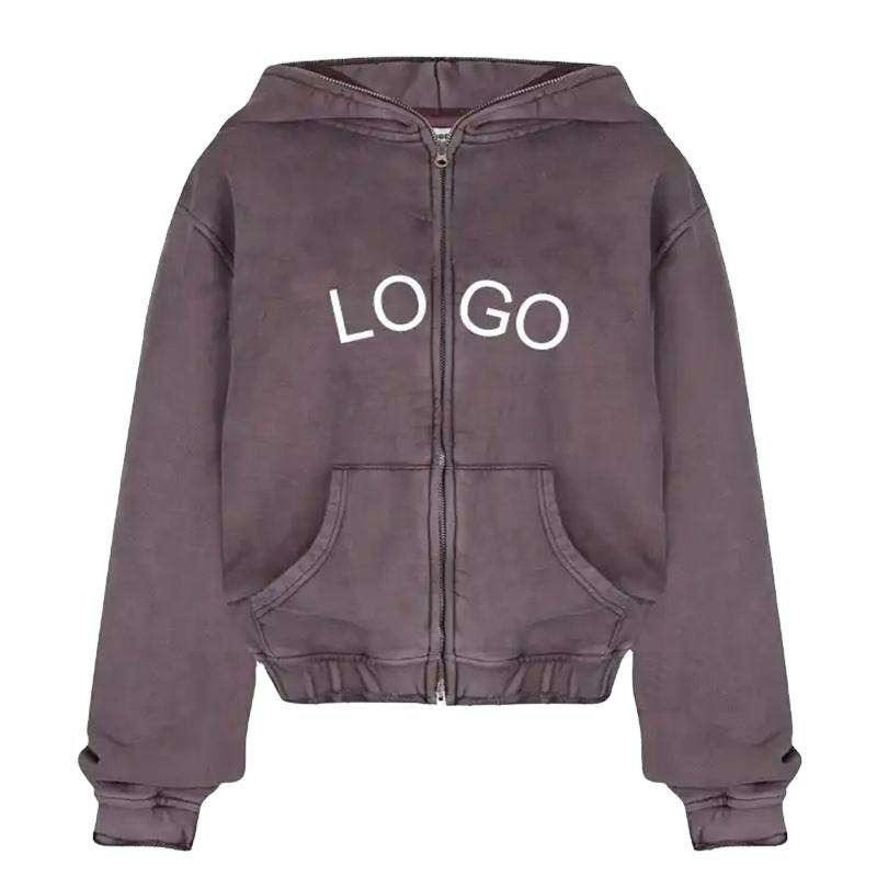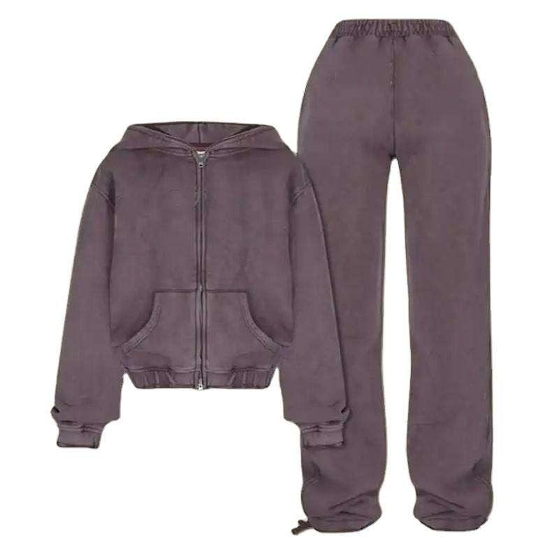 ชุดวอร์มล้างกรดแบบกำหนดเองชุดวอร์มแบบรูดซิปเต็มตัวแบบหนาชุดวอร์มแบบมีฮู้ดและกางเกงวอร์มปักลาย