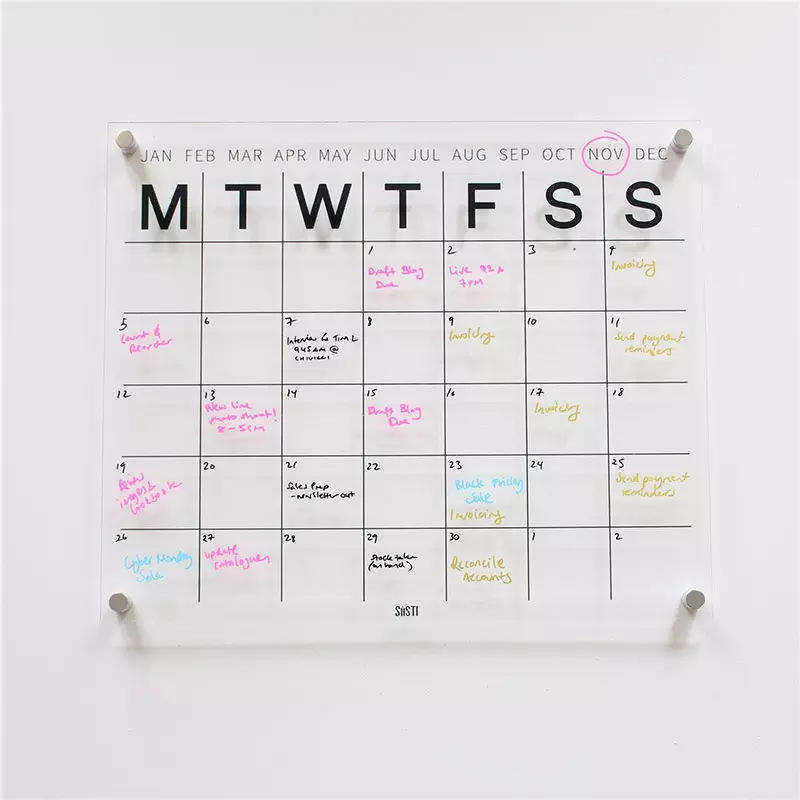 กระดานแม่เหล็กลบแบบแห้งทำจากอะคริลิคแบบกำหนดเองปฏิทินการวางแผนรายสัปดาห์แบบแม่เหล็กใสสำหรับตู้เย็น