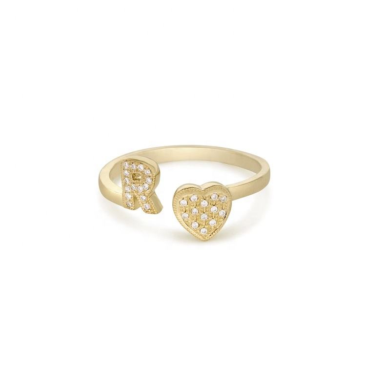 แหวนสลักตัวอักษร26ตัวปรับได้กำหนดเอง925แหวนรูปหัวใจตัวเริ่มต้นประดับเพชรชุบทองและเงินสเตอร์ลิง