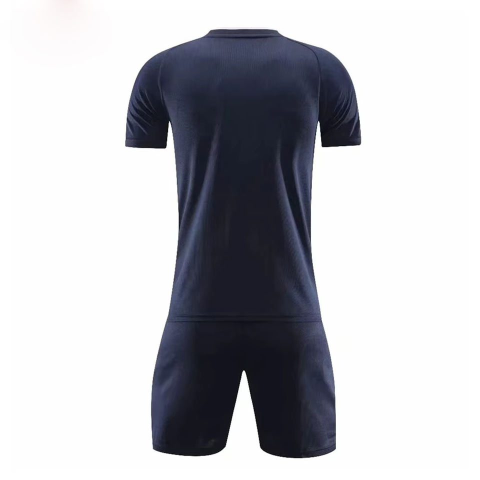 ชุดเสื้อเจอร์ซีย์ฟุตบอลสำหรับผู้ใหญ่ชุดฝึกฟุตบอลแบบแห้งเร็วผ้าโพลีเอสเตอร์100% ชุดฝึกฟุตบอลแขนสั้นระบายอากาศได้พร้อมโลโก้กำหนดสีได้