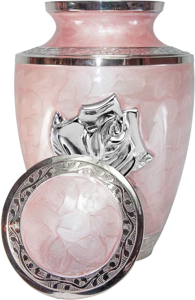Custom Adult Pink Rose Cremation Urn, Large Rose Flower Funeral Urn, Ash urn with Velvet Bag and Personalization