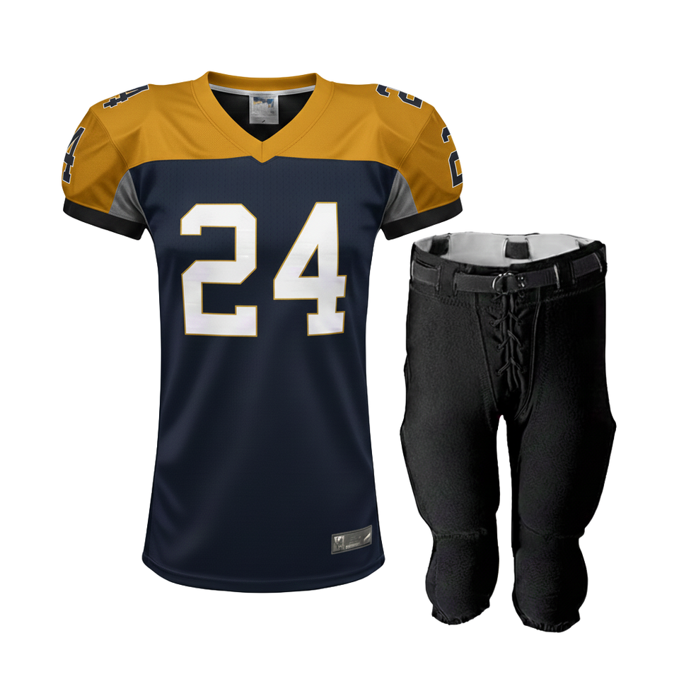 ชุดยูนิฟอร์มอเมริกันฟุตบอลสำหรับผู้ใหญ่แบบกำหนดเอง สำหรับการแข่งขัน ผลิตจากผ้าโพลีเอสเตอร์ 260GSM ระบายอากาศได้ดี เหมาะสำหรับการเล่นกีฬา