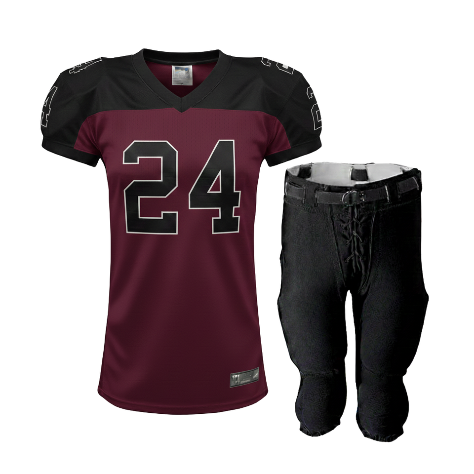 ชุดยูนิฟอร์มอเมริกันฟุตบอลสำหรับผู้หญิงแบบกำหนดเอง ผ้าโพลีเอสเตอร์ 195GSM สำหรับกีฬา