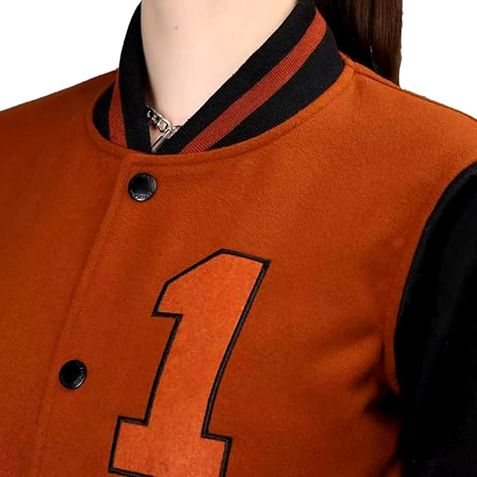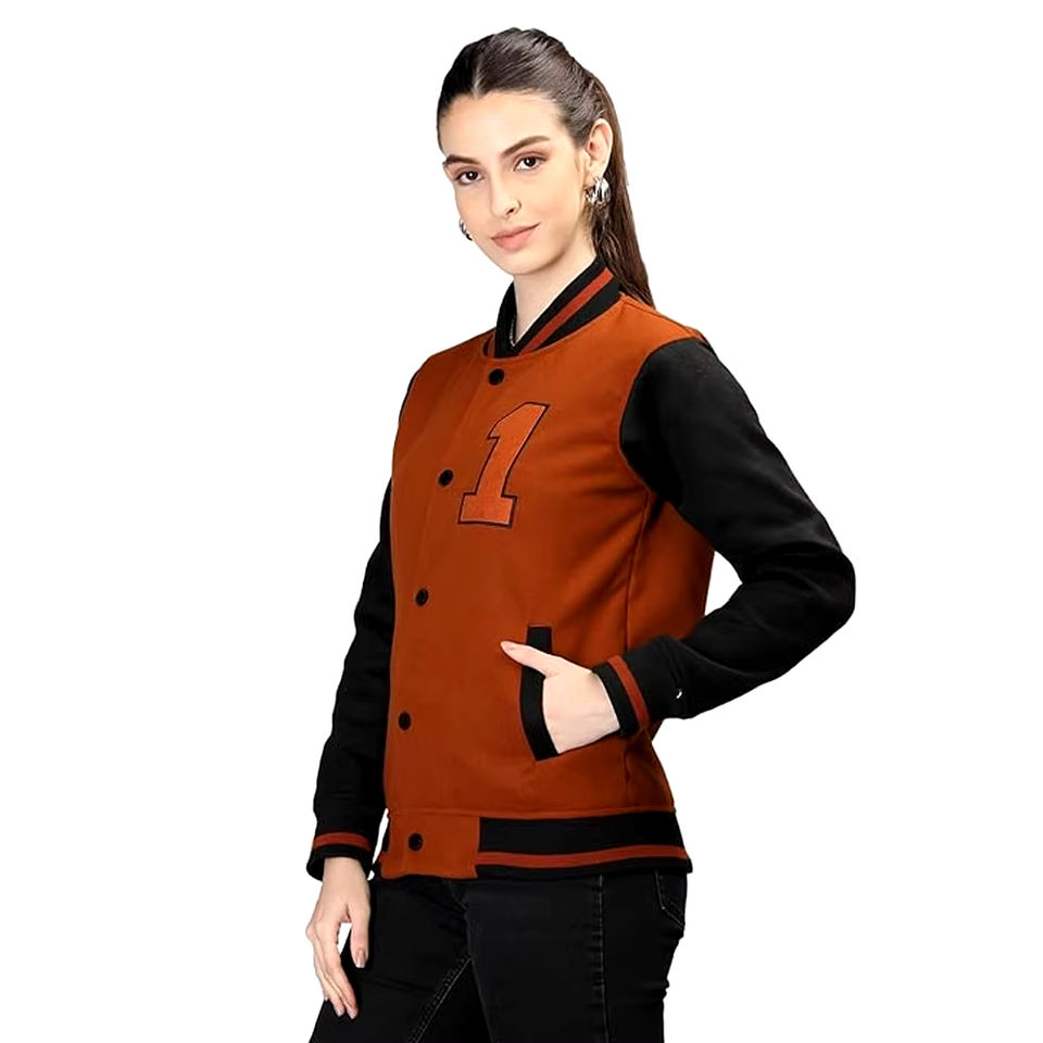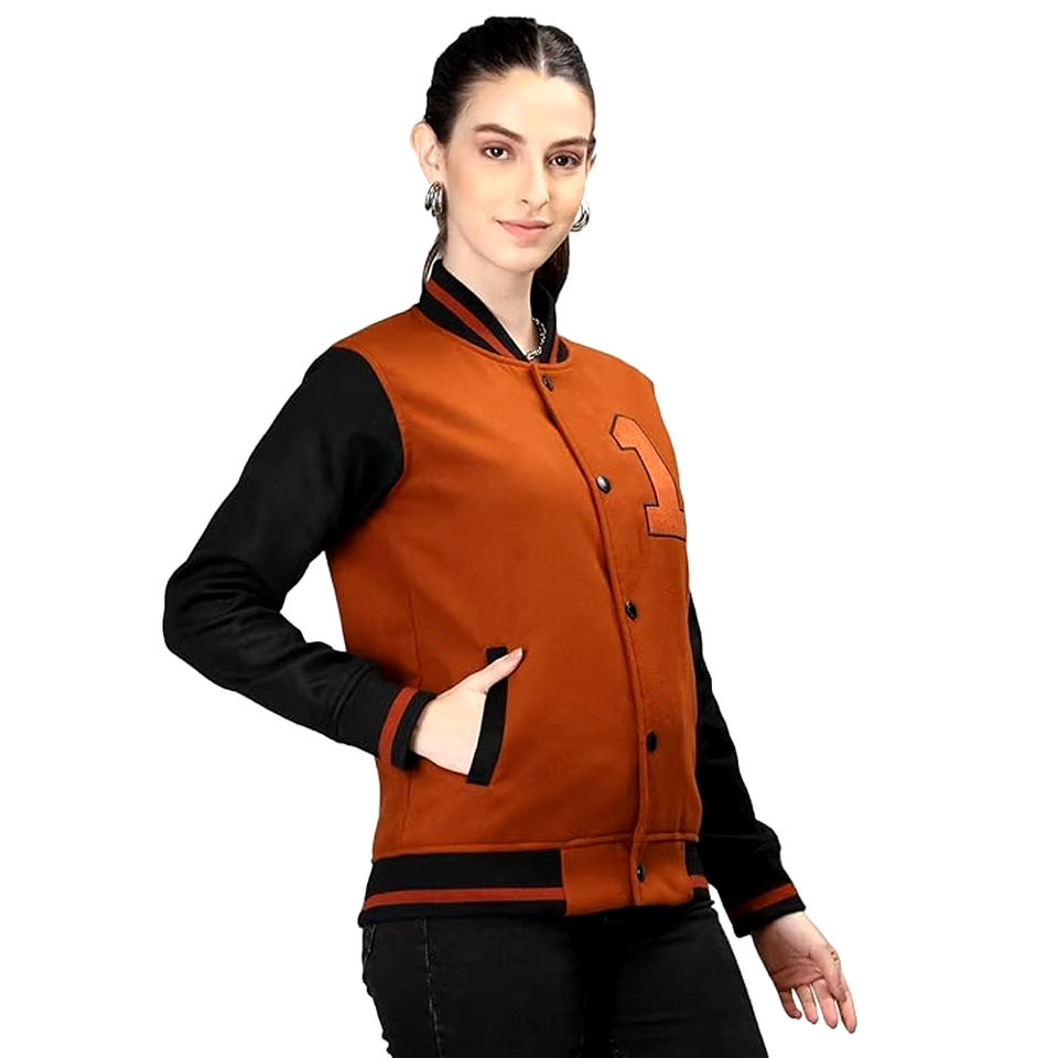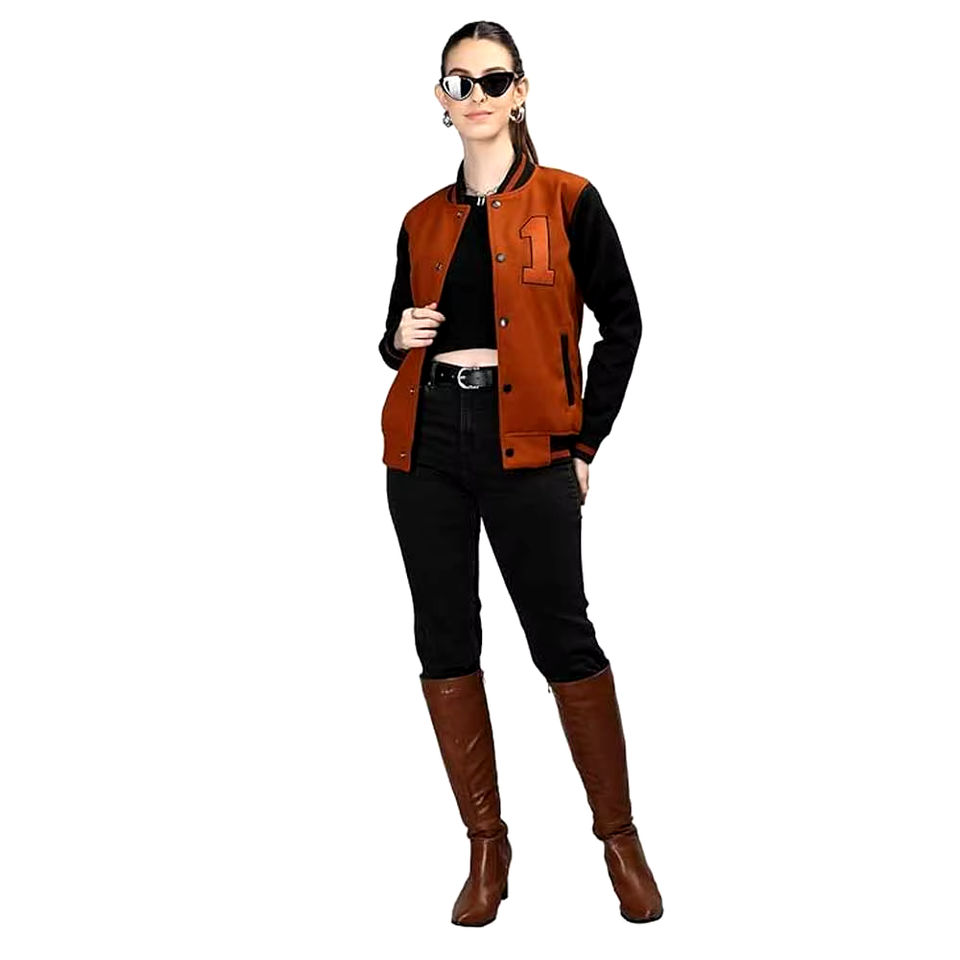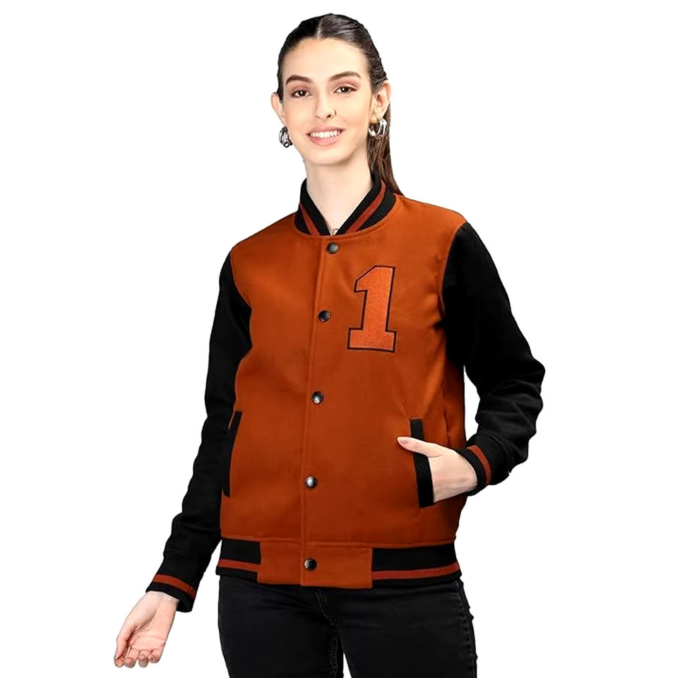 แจ็กเก็ตเบสบอลตัวอักษรหนังแท้สำหรับผู้หญิงเยาวชนผู้ใหญ่กำหนดได้เองสีพื้น