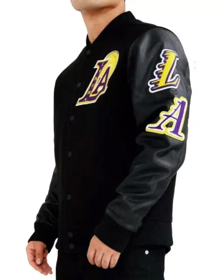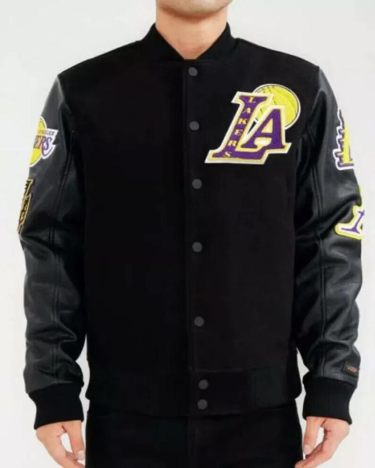 Custom All Black Wool Varsity Jacket Men Leather Sleeve Large Chest Patch Bomber Jacket Wholesale Letterman Baseball