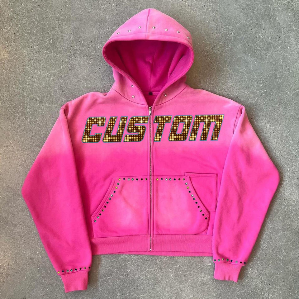 ผู้ผลิตเสื้อฮู้ดดี้พิมพ์ลายกราฟิกทั้งตัว สไตล์สตรีทแวร์ ล้างสีแบบแอซิด ทรงโอเวอร์ไซส์ ซิปหน้า สำหรับผู้ชาย