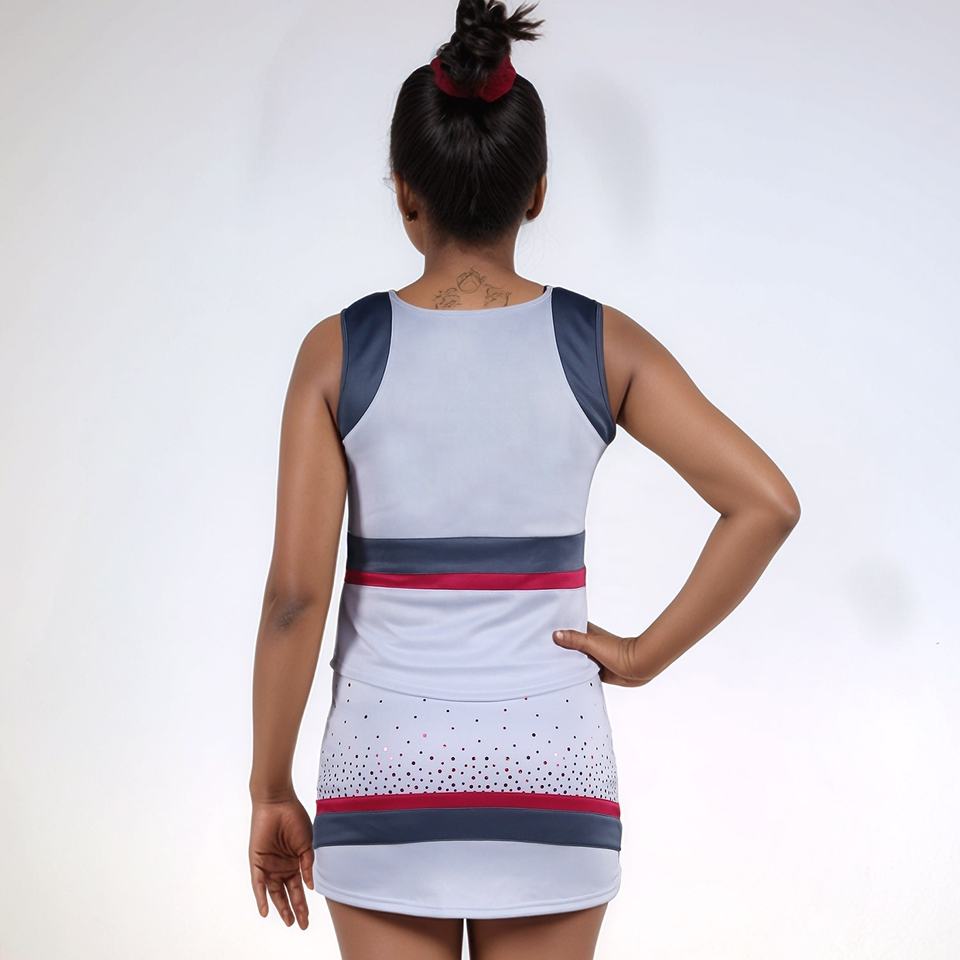 ชุดยูนิฟอร์มเชียร์ลีดเดอร์แบบกำหนดเองสำหรับผู้หญิง ออกแบบเองได้ ขายส่ง ชุดเชียร์ลีดเดอร์ ผ้าโพลีเอสเตอร์ 100%