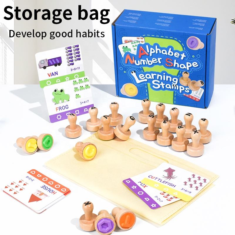 Custom Alphabet and Number Wood Stampers Educational Toy for ABC Spelling and Mathematics Learning