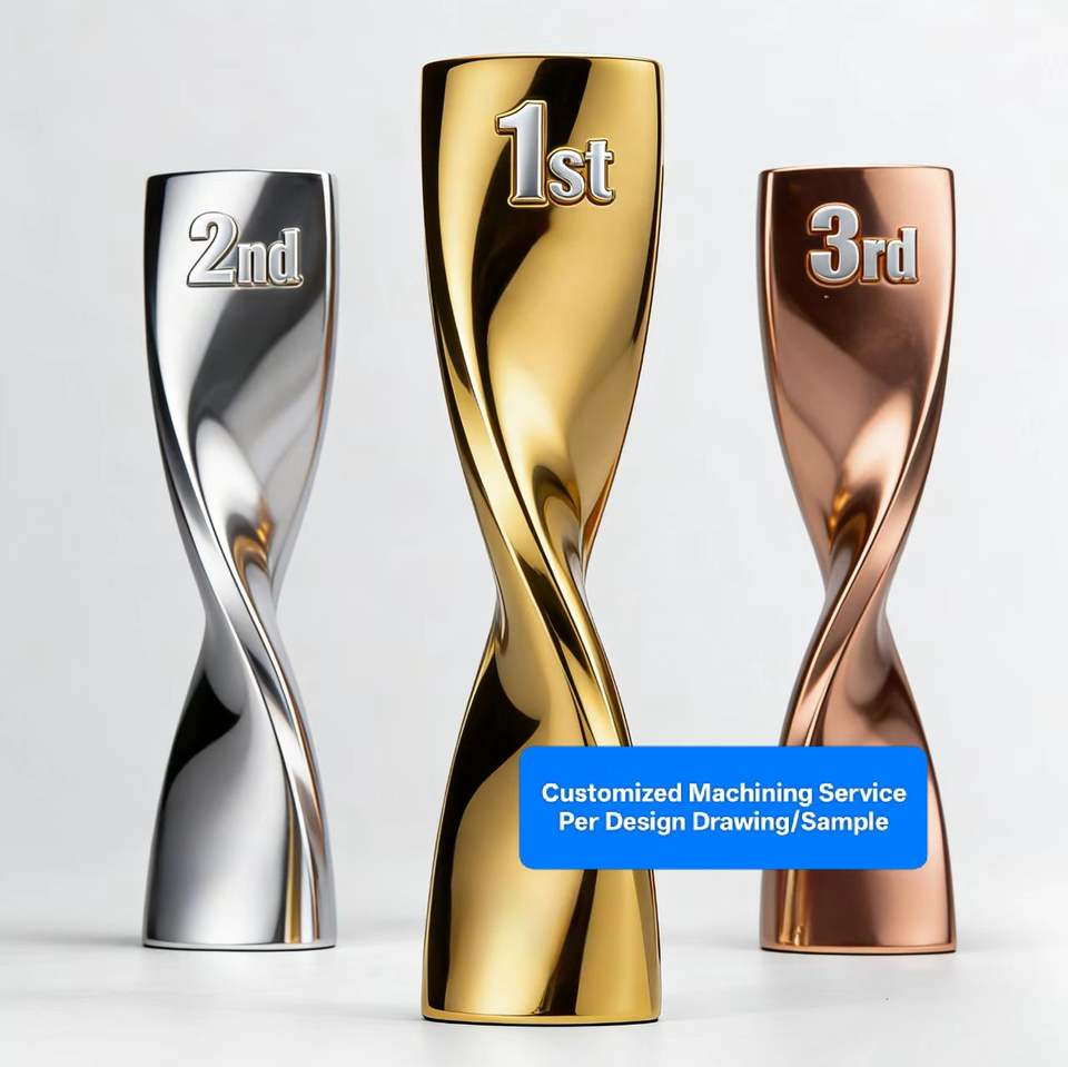 ถ้วยรางวัลอะลูมิเนียมอัลลอยด์แบบกำหนดเอง สลักลายด้วยเครื่อง CNC ตกแต่งด้วยทองคำ ออกแบบส่วนตัว สำหรับการแข่งขัน รูปทรงสะพานดาว พร้อมคริสตัลแก้ว