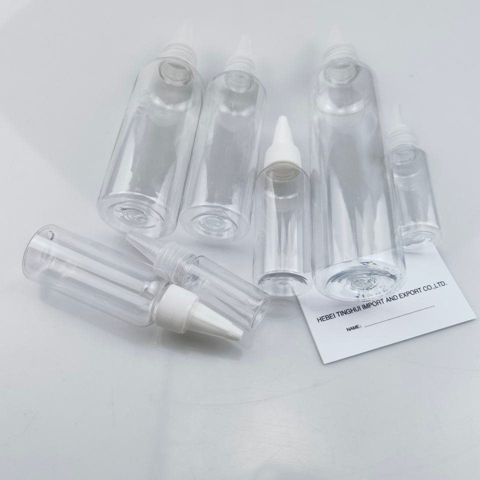 ขวดน้ำมันใสสีเหลืองอำพันแบบกำหนดเอง ขนาด 50 มล. 100 มล. 150 มล. 200 มล. 250 มล. ขวดพลาสติกบีบได้พร้อมฝาเปิดแบบหมุน