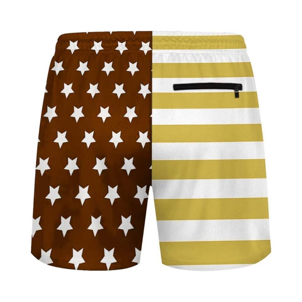 กางเกงว่ายน้ำสำหรับผู้ชายกางเกงขาสั้นชายหาดทำจากโพลีเอสเตอร์ลายธงอเมริกันพิมพ์100% แบบลงสีไม่เป็นรอยยับสำหรับฤดูร้อน