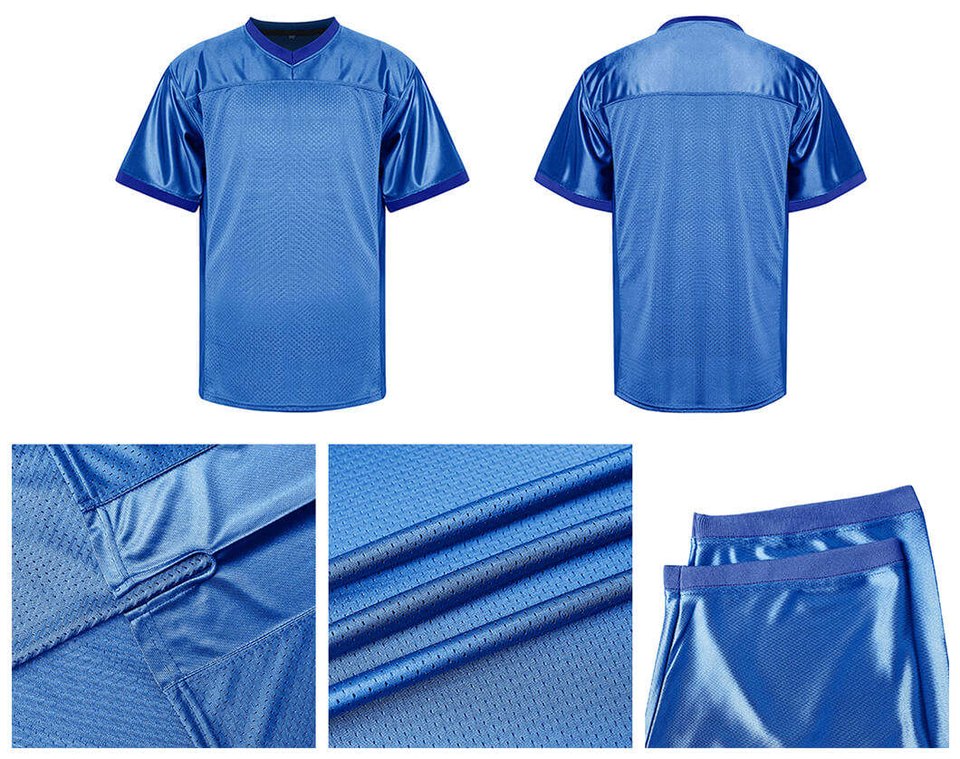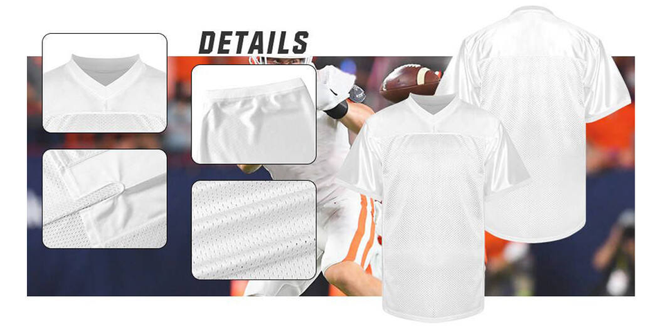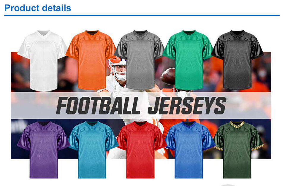 ชุดเสื้อฟุตบอลอเมริกันออกแบบได้ตามต้องการชุดทีมชื่อเสื้อแขนสั้นระบายอากาศตาข่ายป้องกันแบคทีเรียออกแบบได้ตามต้องการ