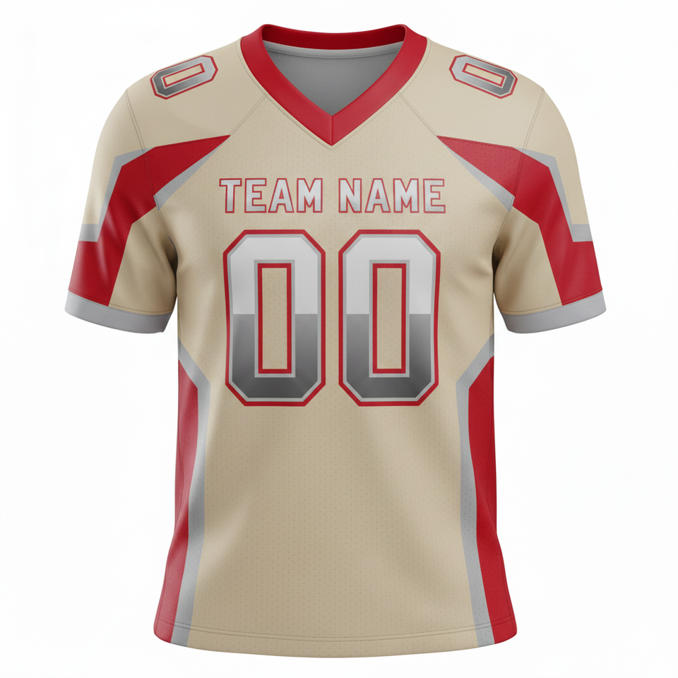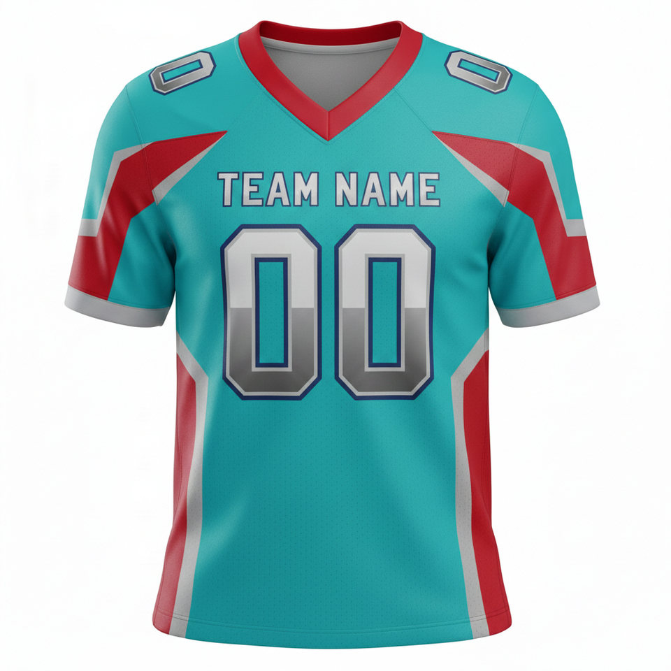 เสื้อฝึกซ้อมอเมริกันฟุตบอลแบบกำหนดเองสำหรับผู้ใหญ่ แขนสั้น ระบายอากาศได้ดี มีไซส์พลัส คอวี ผลิตจากโพลีเอสเตอร์ 100%